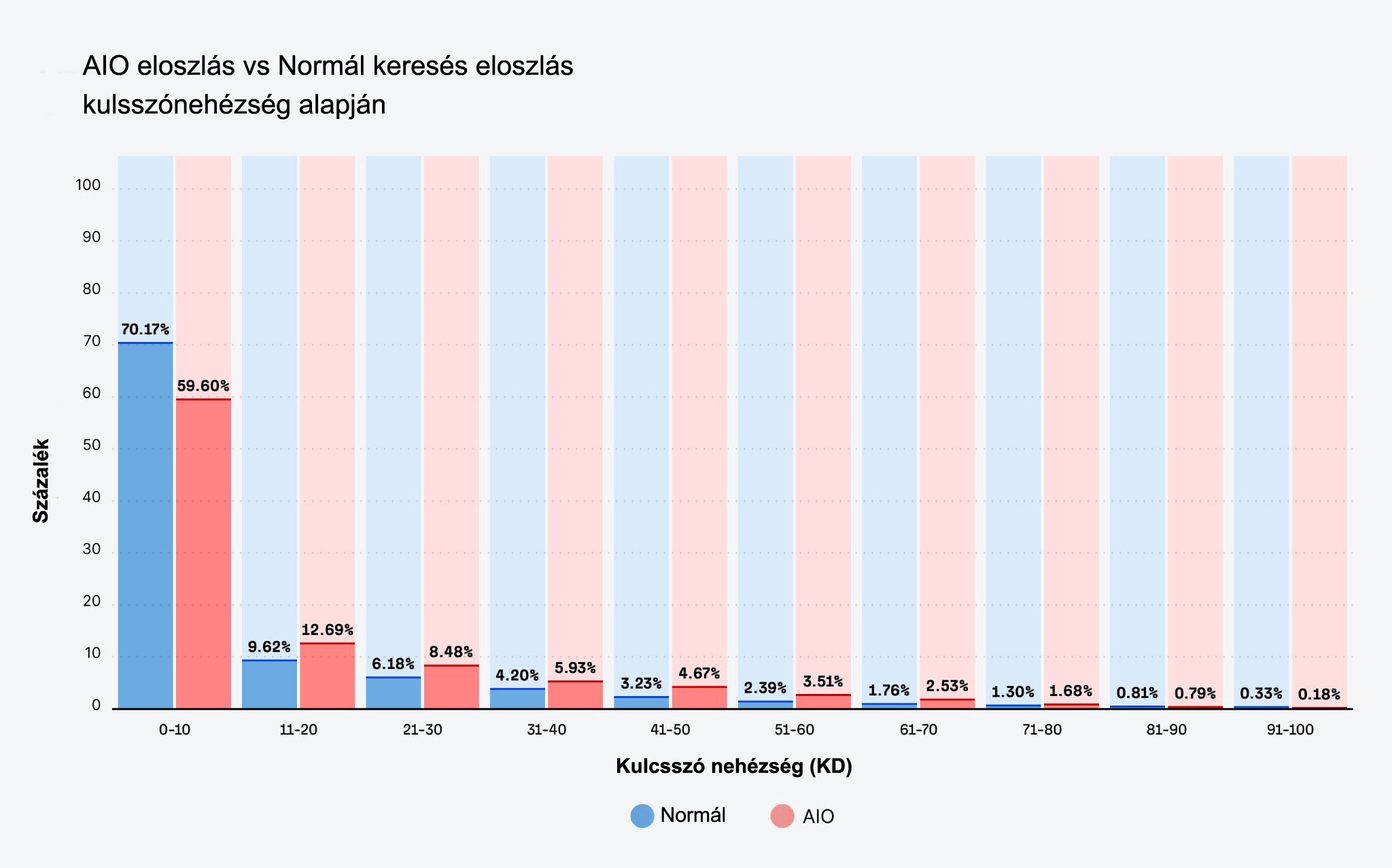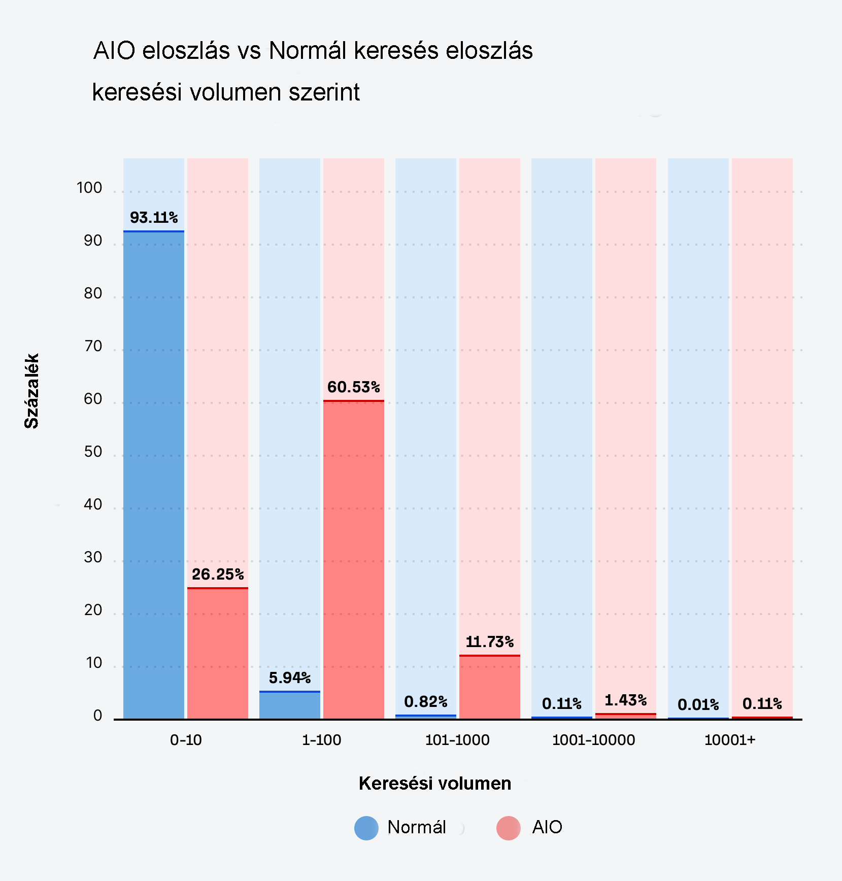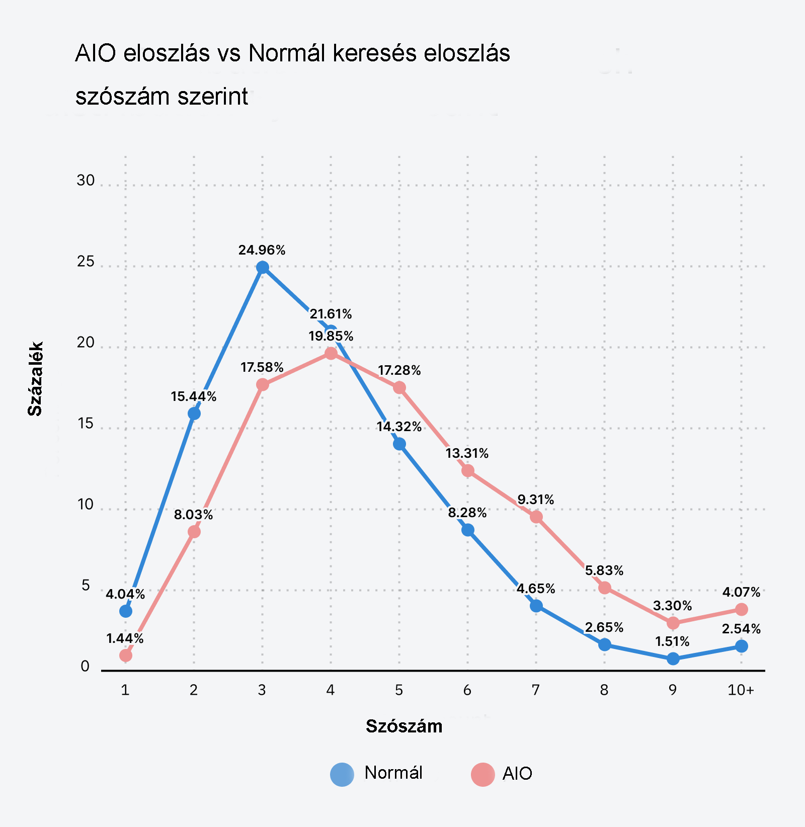 - Az AIO-k a Google-keresések 12,8%-ában vagy annál többször jelennek meg mennyiség szerint