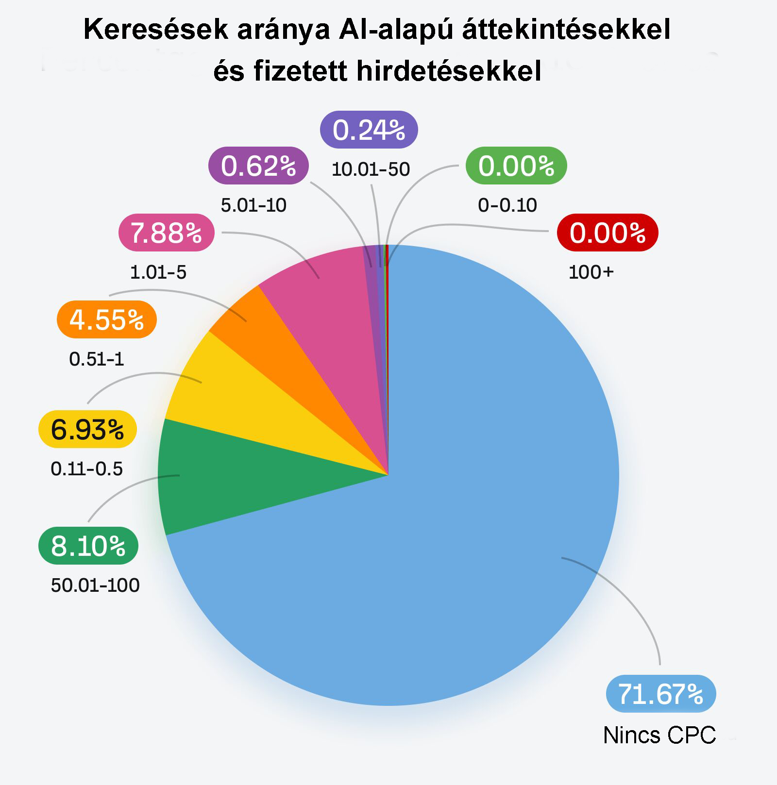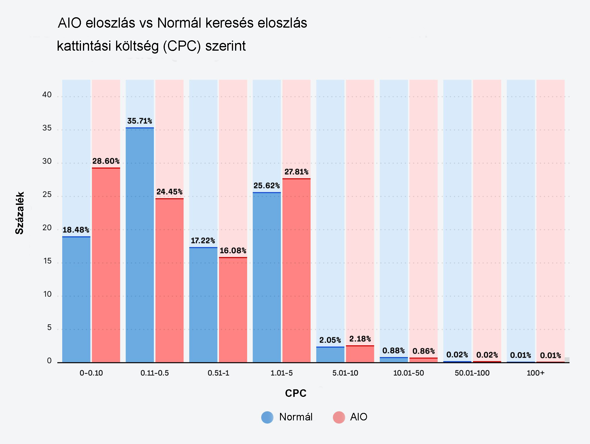 Ami még érdekesebb, hogy az AIO-kkal rendelkező keresések 71,67%-ában nem voltak CPC-adatok. Ez azt jelzi, hogy az AIO-keresések többsége egyáltalán nem volt monetizált. Nem csoda, hogy még senki sem látott hirdetéseket az AIO-kban. A Google-nak pénzt hozó kifejezések többségére nem jelennek meg.
